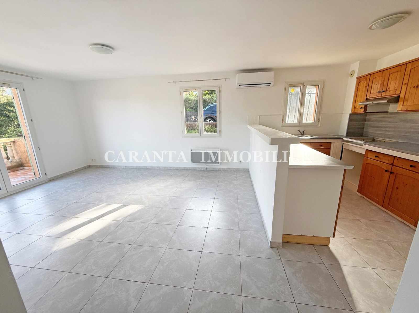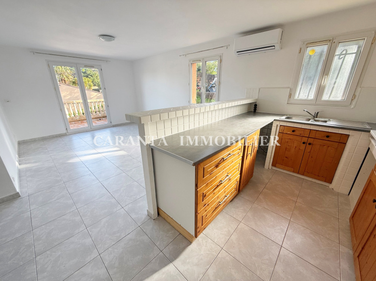 Il comprend: 1 entrée, 1 beau séjour climatisé avec coin cuisine US ouvrant sur la terrasse de 14m² avec vue dégagée, 2 chambres avec placards, 1 salle de bains avec emplacement lave linge, 1 WC séparé.