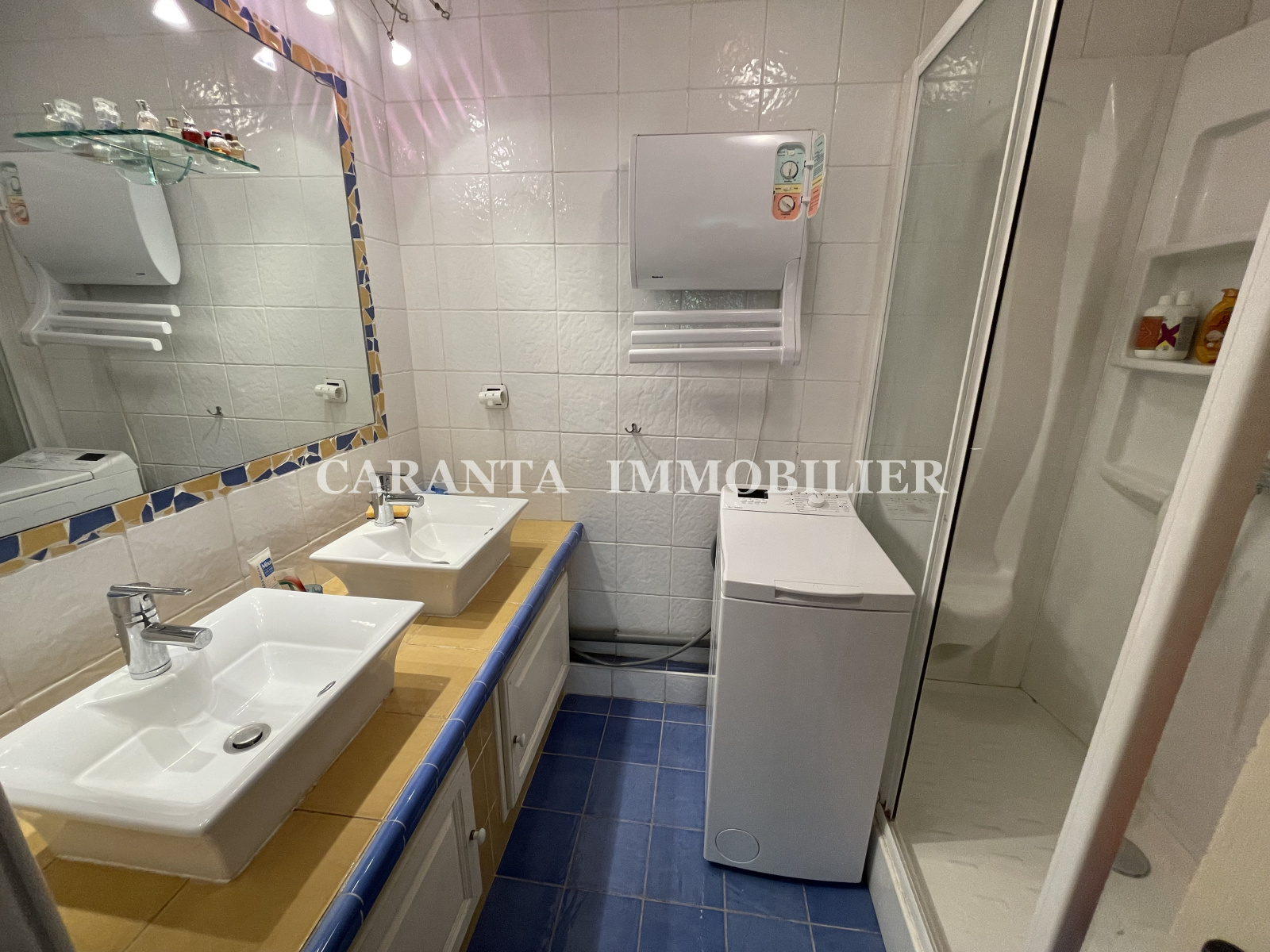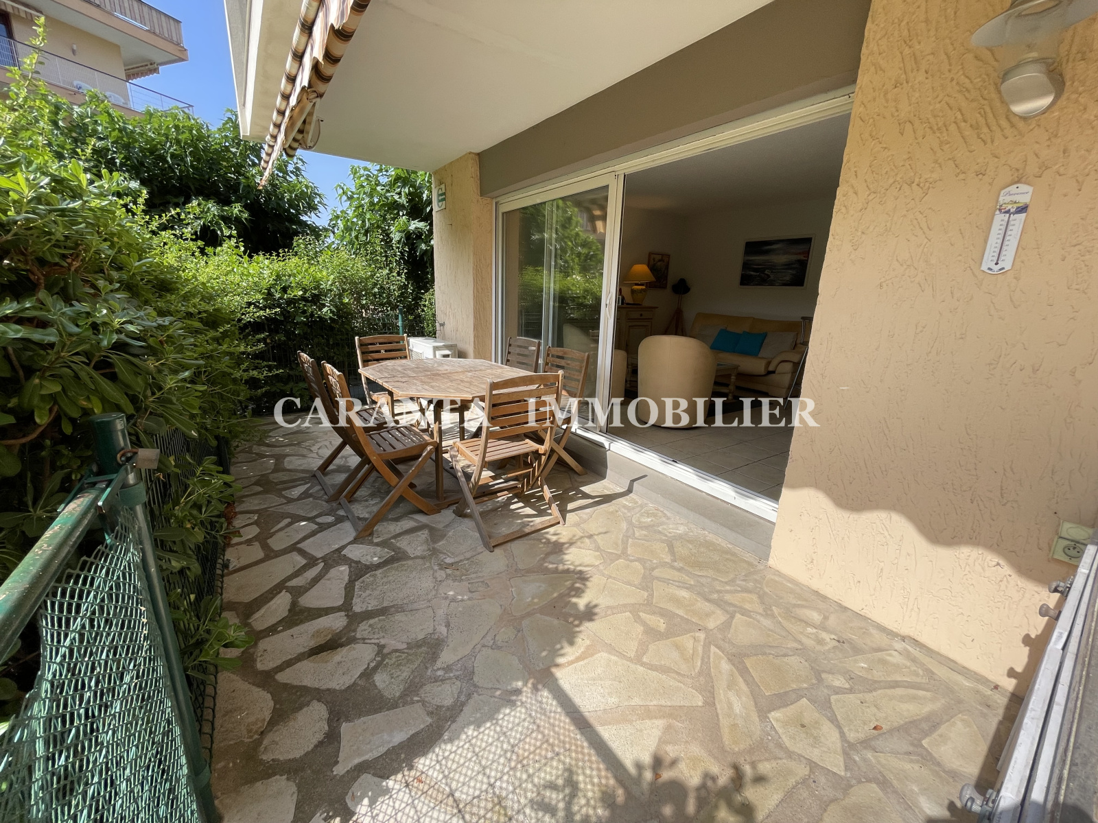Cet appartement se compose d’un hall d'entrée avec double placard, d’un séjour climatisé avec cuisine américaine équipée, d'une grande baie vitrée donnant sur la belle terrasse d'environ 10m² qui est équipée d'un store et d'un accès direct vers l'extérieur, deux chambres climatisées, une salle d'eau avec double vasque, un WC séparé et un coin nuit équipé de lits superposés. Entièrement climatisé et équipé de volets roulants électriques, ce bien possède également une grande place de parking privative.