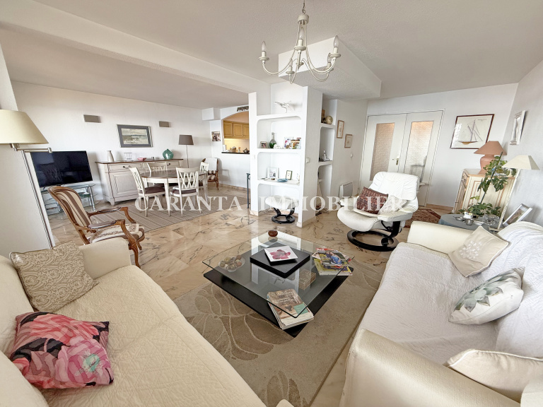 Il se compose d'une entrée, 1 double séjour face à la Mer ouvrant sur la terrasse, 1 cuisine US, 2 chambres avec leur balcon, 1 WC séparé, 1 salle d'eau. 1 parking privatif, 1 garage avec électricité.