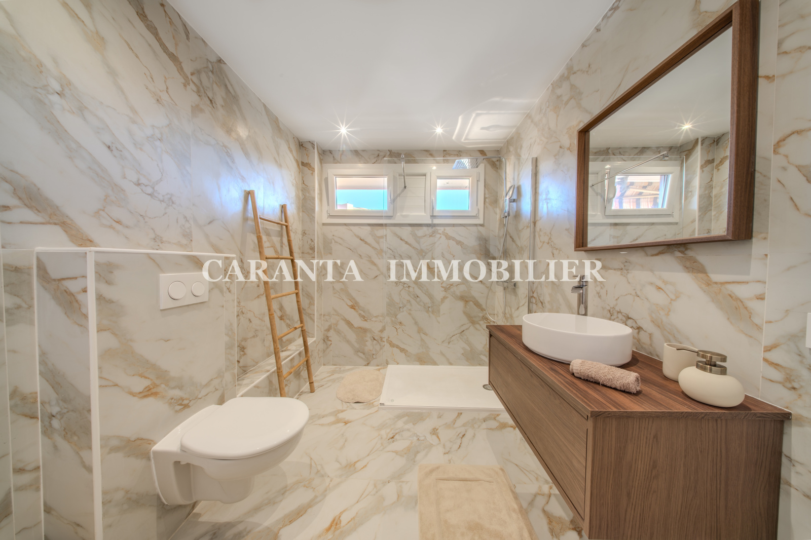 Acheter un appartement 2 pièces à Sainte-Maxime, idéalement situé à proximité immédiate des commerces, du centre-ville et des plages, magnifique appartement 2 pièces de 42,16 m² au 1er étage avec ascenseur d’une résidence de standing avec piscine. Cet appartement entièrement rénové offre des prestations soignées et haut de gamme. Il se compose d’une entrée avec placards, un séjour lumineux et climatisé avec cuisine ouverte ouvrant sur le balcon, d’une chambre confortable avec placards ouvrant sur le balcon, d’une salle d’eau moderne avec WC. Vous profiterez d’un vaste balcon d’angle de 23 m², véritable espace de vie extérieur, idéal pour les moments de détente. La résidence sécurisée et recherchée dispose d’une piscine et de nombreux parkings. L’ensemble constitue un bien rare sur le secteur, parfaitement adapté pour une résidence principale, secondaire ou un investissement de qualité par sa rentabilité exceptionnelle en location courte durée. La vente meublée est envisageable. À découvrir sans tarder!