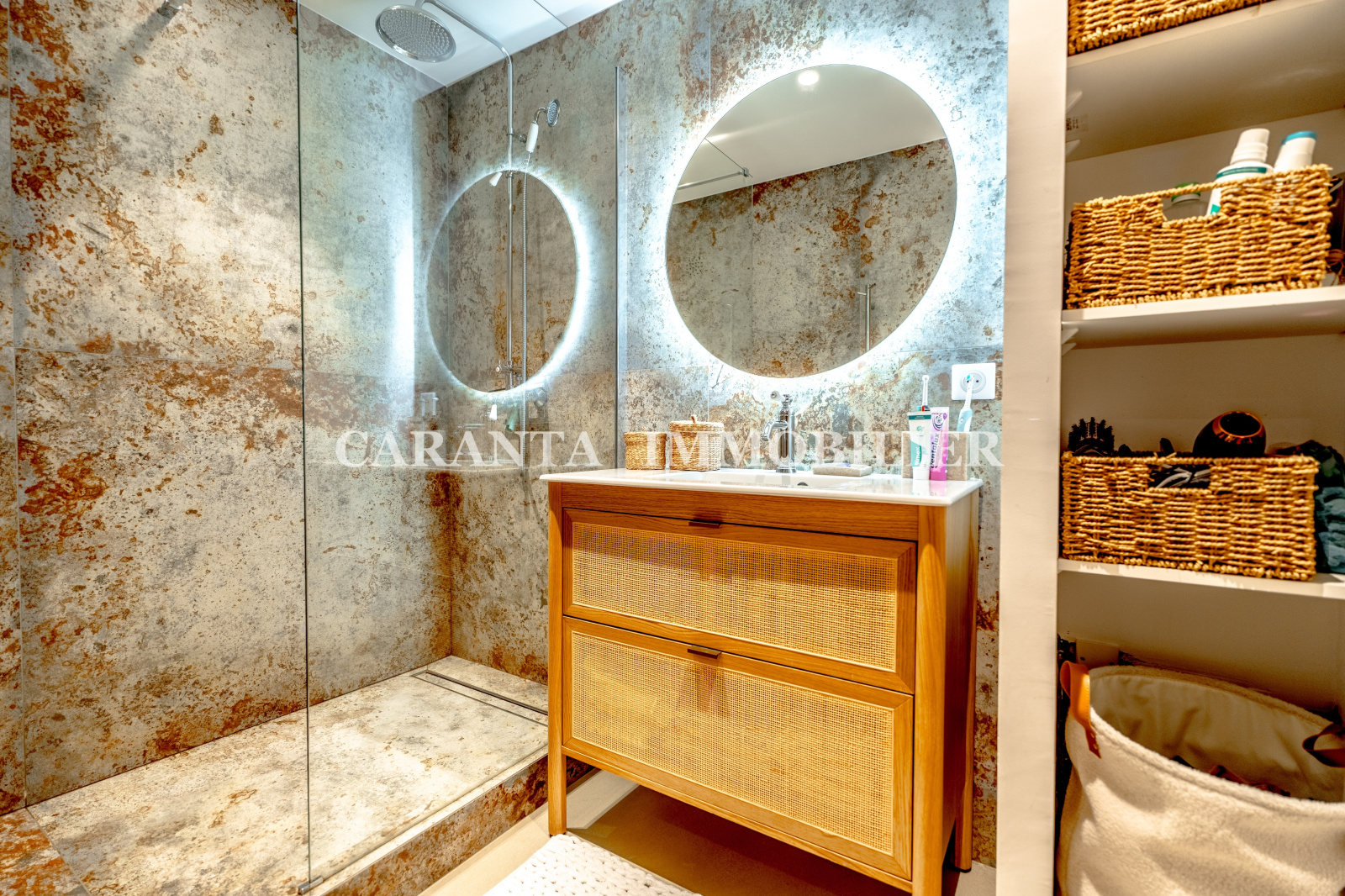 Acheter un appartement 3 pièces à Sainte Maxime avec Vue Mer et garage, situé à environ 1km du centre ville au sein d'une résidence fermée avec tennis et gardien, offrant une superbe Vue dégagée sur la Mer, magnifique appartement 3 pièces de 67.70m² entièrement rénové avec goût et belles prestations ainsi qu'un garage et une cave.