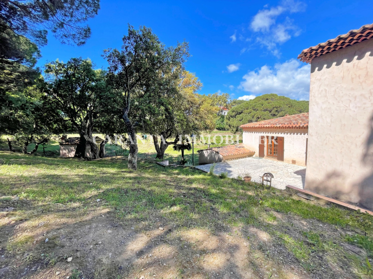 Achat Villa 9 pièces Sainte Maxime avec garage et appartement indépendant, situé dans un écrin de verdure au sein d'un secteur résidentiel de renom, édifiée sur un beau terrain de 2800m² piscinable, villa familiale de maçon au style provençal comprenant 1 logement principal de 155m² avec garage de 80m² + 1 appartement T3 indépendant de 70m².