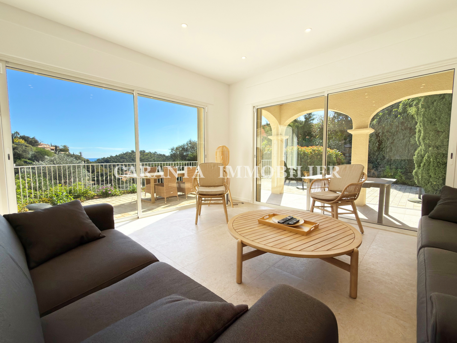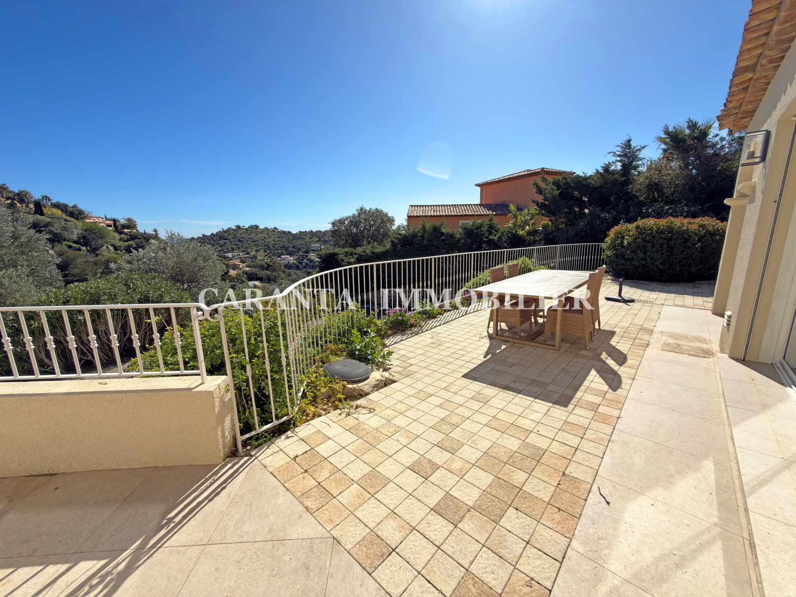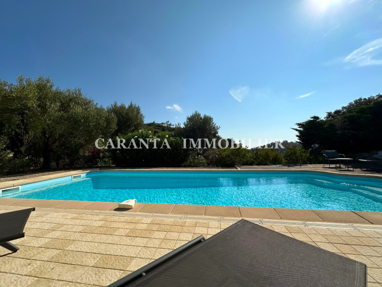 ** EXCLUSIVITE CARANTA Immobilier **Acheter une villa Ste Maxime 6 pièces proche du golf avec piscine, garage et aperçu Mer, positionnée a deux pas du Green du golf de Sainte-Maxime, superbe villa de 158m² entièrement rénovée, édifiée sur un terrain de 1175m² avec piscine, garage, vue dégagée et aperçu Mer. Elle est composée : 1 garage avec porte motorisée avec alarme, 1 entrée par porche, 1 vaste séjour lumineux et climatisé ouvrant sur la terrasse couverte et découverte, 1 cuisine équipée, 1 WC, 1 chambre en suite climatisée avec sa salle d’eau. A l’étage: 1 chambre de Maitre de 30m² climatisée avec salle d’eau, dressing et WC. Au rez-de-piscine: 1 chambre climatisée avec salle d'eau, 2 chambres climatisées, 1 salle d'eau, 1 WC, buanderie, Cave. 1 piscine. Villa protégée par un système d'alarme moderne. Prestations raffinées, portail automatique, Fibre Optique.