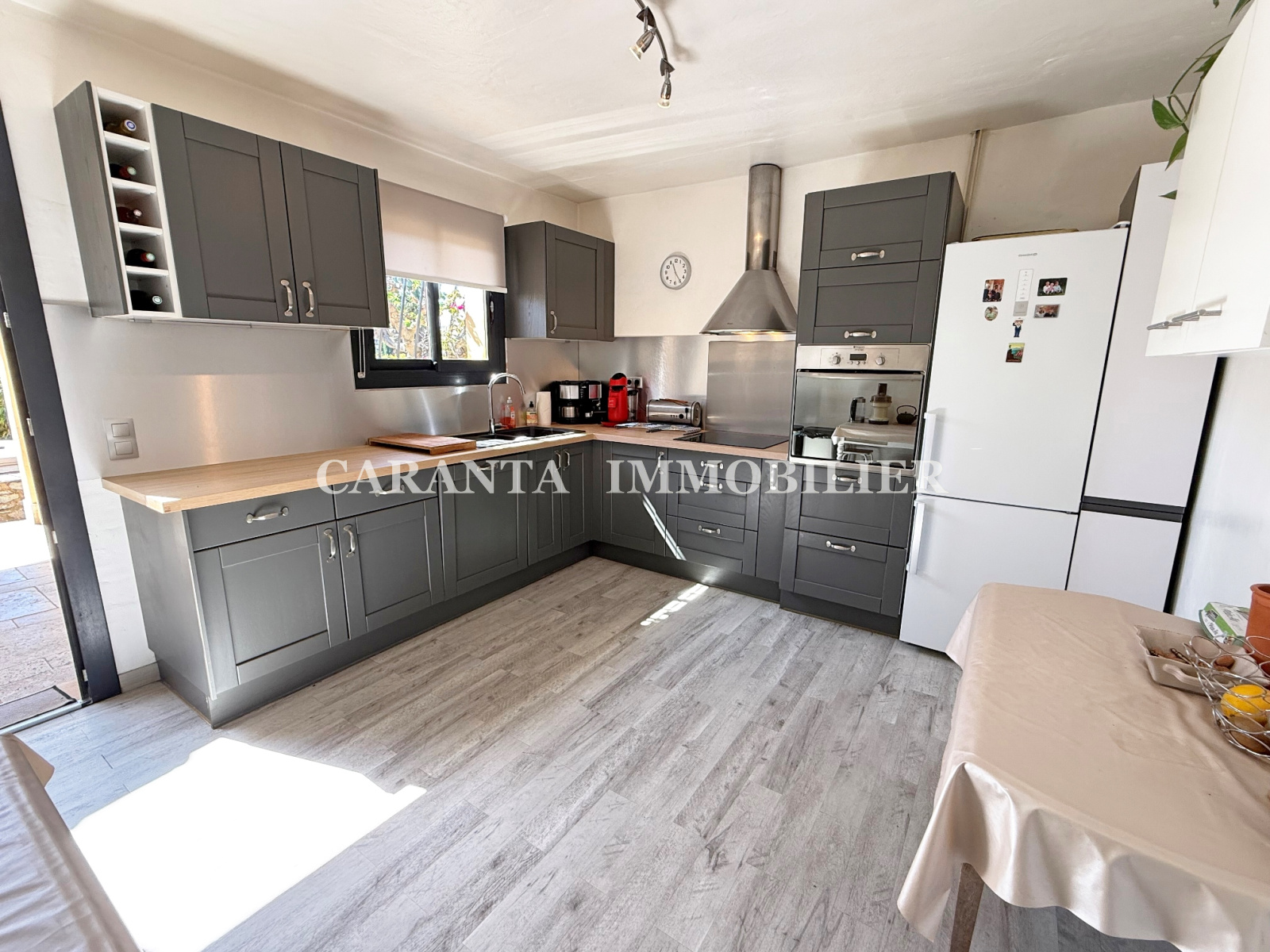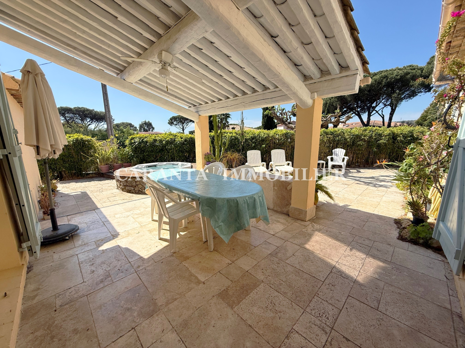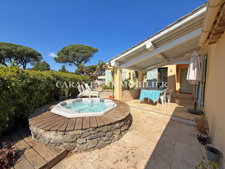 Vente villa 4 pièces Sainte-Maxime avec 2 garages, située dans un quartier résidentiel très prisé de Ste Maxime et au sein d'un environnement très calme à 1.8km du centre ville de Sainte-Maxime, charmante villa T4 individuelle de plain pied de 125m² édifiée sur un terrain plat de 664m² agrémentée de 2 garages ainsi qu'un jacuzzi.