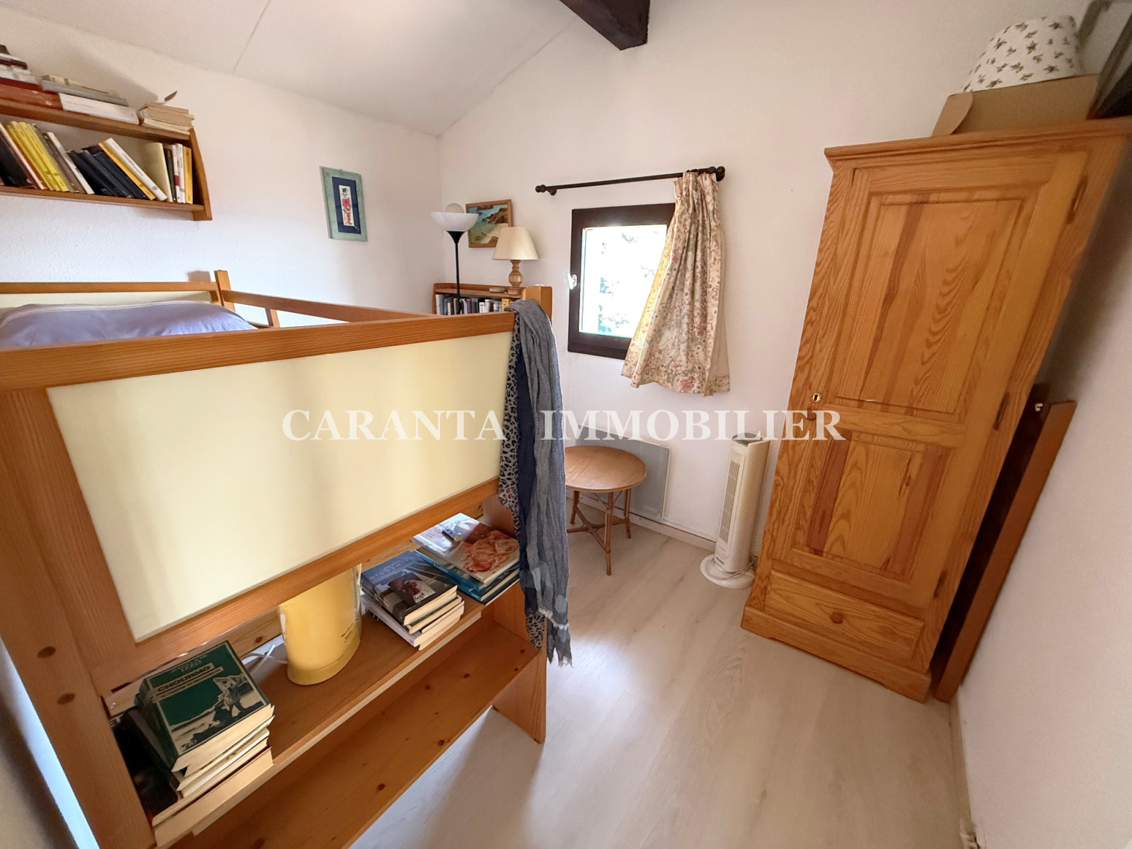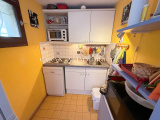 Il se compose: une pièce de vie avec coin cuisine ouvrant sur la terrasse Vue Mer, 1 chambre cabine, 1 salle d'eau WC. A l'étage: 2 chambres, placards. Un garage + un parking extérieur. Résidence avec piscine et tennis, plage à 80m.