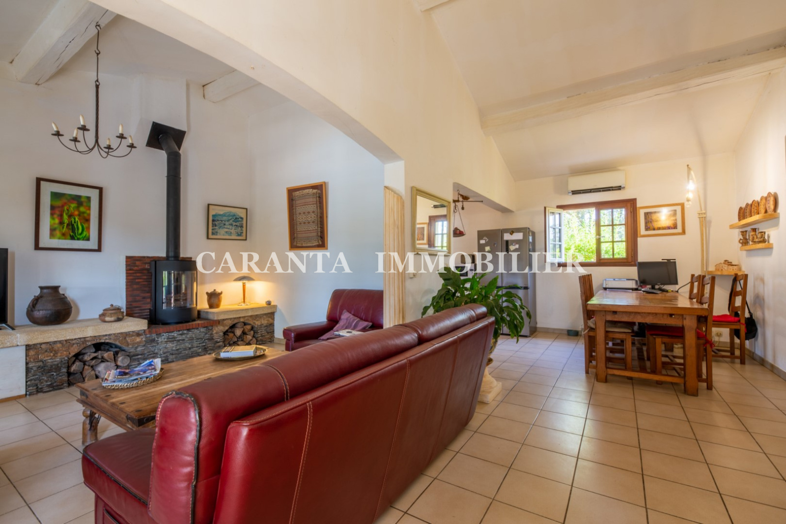 Cette propriété se compose: une habitation principale 5 pièces de 105m² comprenant 1 entrée, un beau séjour climatisé avec coin salon et poele a bois, une cuisine semi indépendante équipée, le tout ouvrant sur une grande terrasse face à la piscine et sa cuisine d'été en pierre avec four a pizza, 4 chambres, 1 salle de bains, 1 WC.